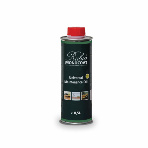 Monocoat Universal Maintenance Oil is een onderhoudsolie voor het opfrissen van hout dat behandeld werd met Rubio Monocoat olie, 500 ml = 75 tot 100 m2 (naargelang de graad van slijtage). Zeer weinig product gebruiken om te vermijden dat het oppervlak kleverig wordt. Als ook voor het opwaarderen van niet met Rubio Monocoat behandelde oppervlaktes.